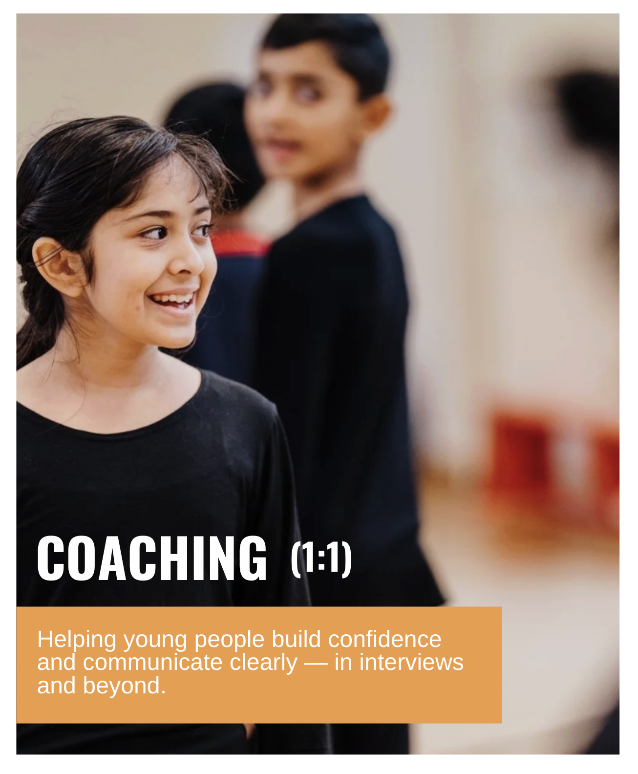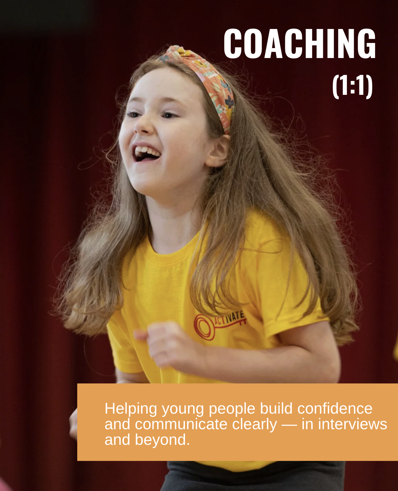This workshop builds students’ confidence, communication and speaking skills through practical, actor-led training.
