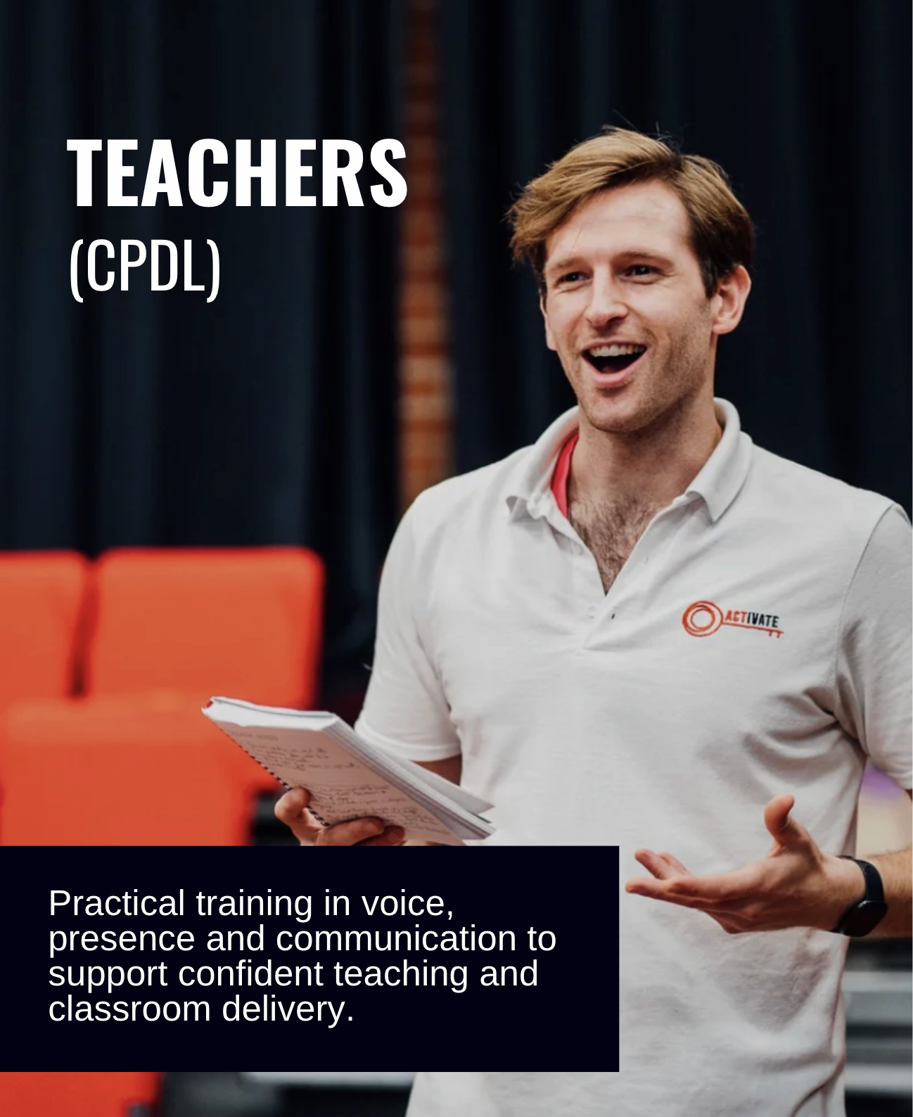 Actor-led workshops that help students speak up, present with impact and grow in confidence.