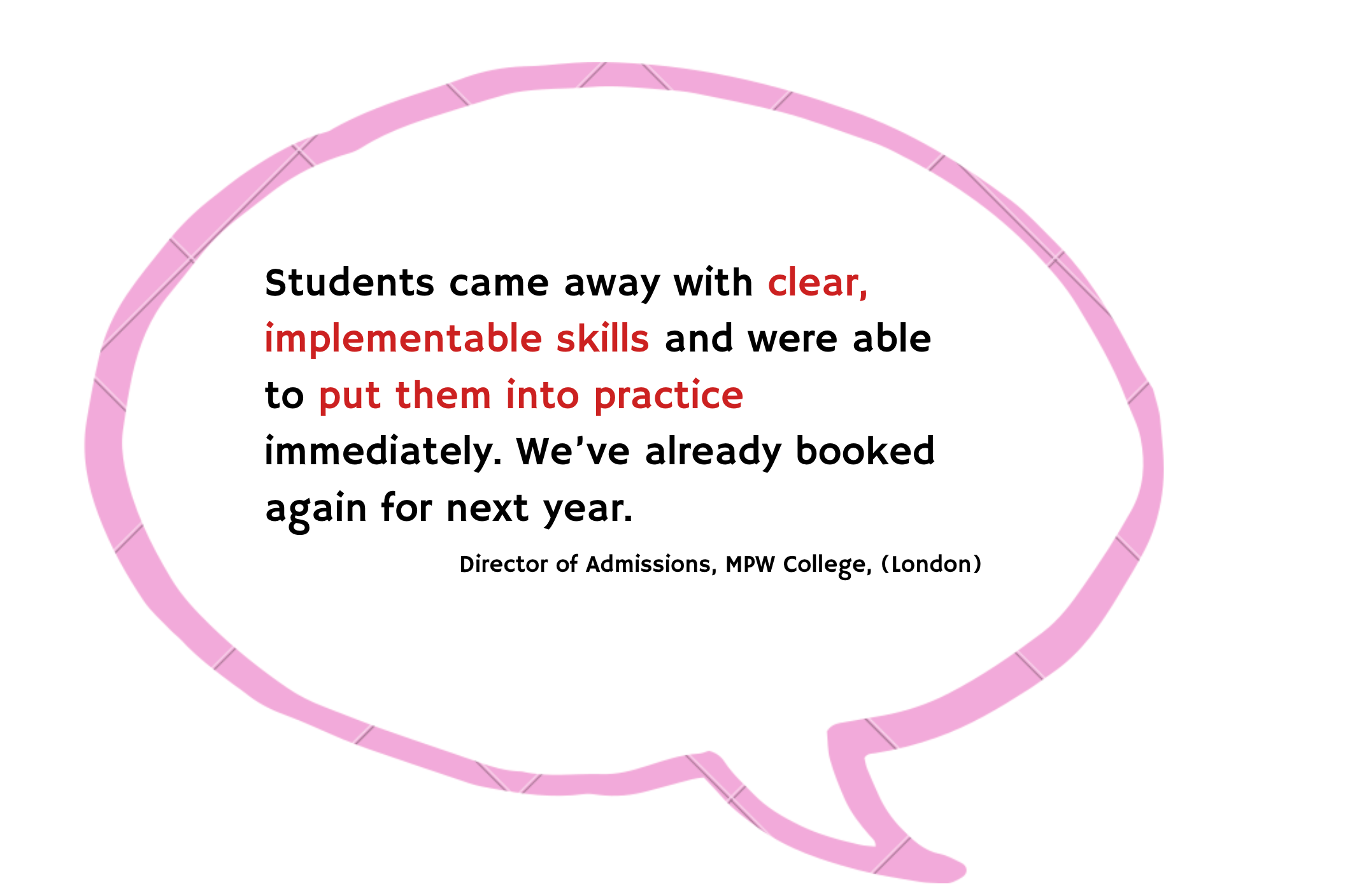 “Students came away with clear, implementable skills and were able to put them into practice immediately. We’ve already booked again for next year.”