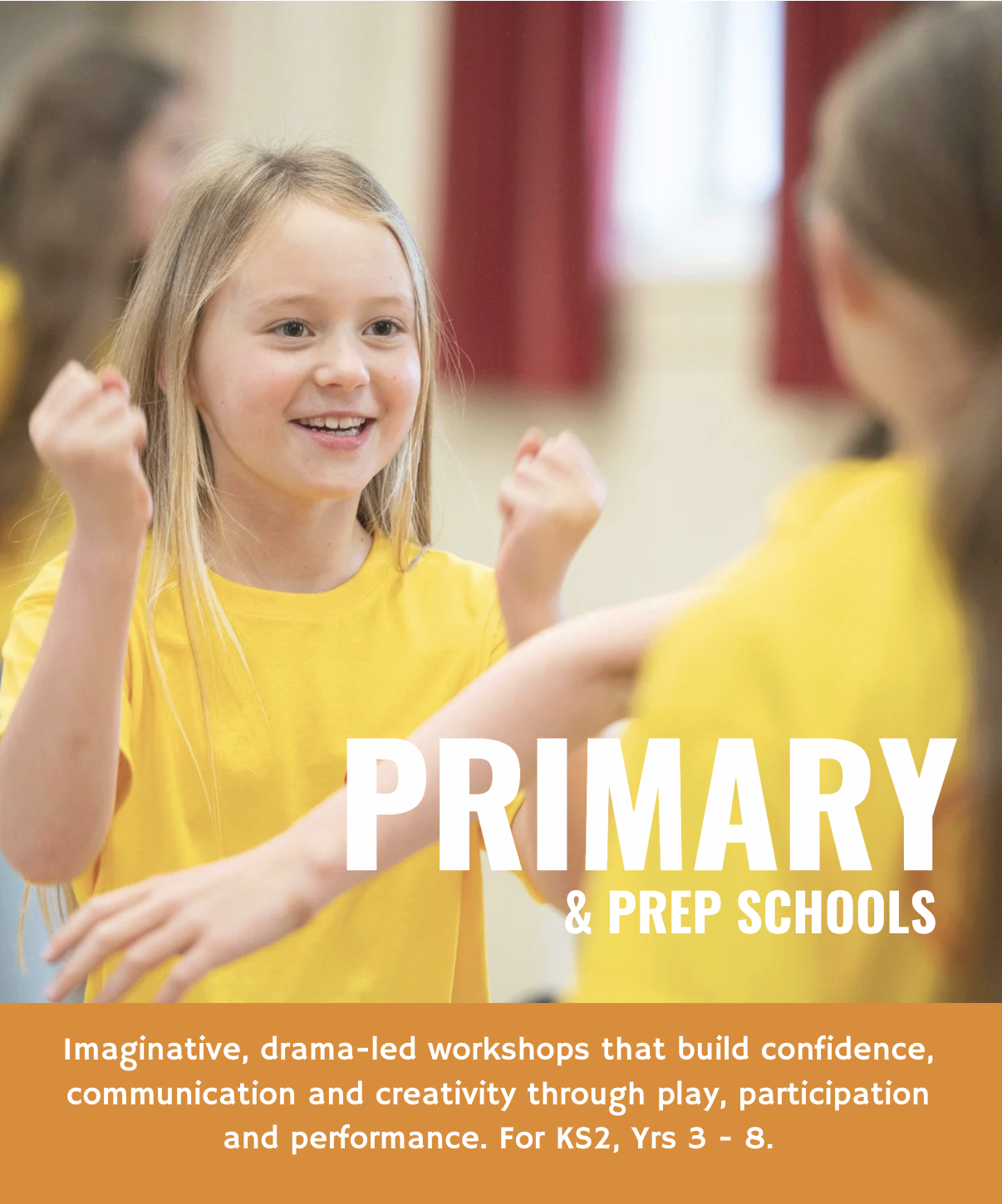 We create dynamic, actor-led workshops that energise classrooms, build confidence and give every student the tools to find and use their voice.